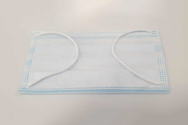 Mascherina chirurgica tre strati, con elastico e stringinaso.